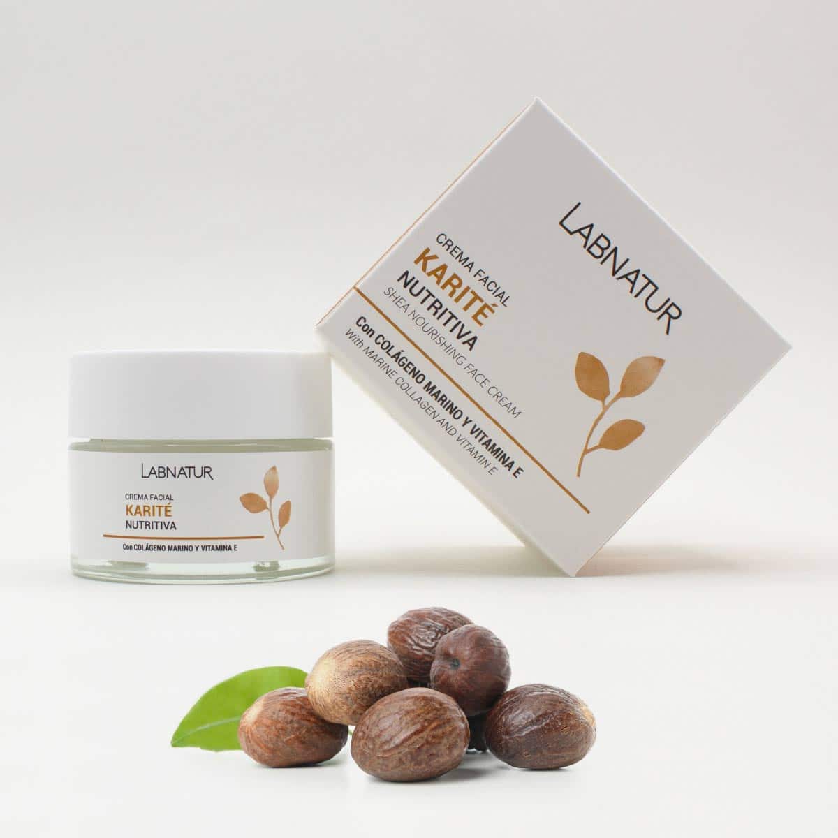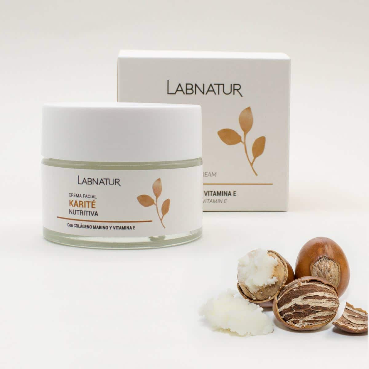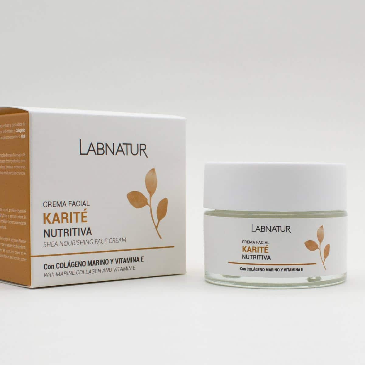 Labnatur Karité Creme Facial de Dia tem uma poderosa ação hidratante e nutritiva. Funciona melhorando a elasticidade da pele graças ao seu alto teor de vitamina E. Também tem ação calmante para a pele irritada. Possui um grande poder de hidratação e nutrição que melhora a elasticidade da pele, ao mesmo tempo que a repara e regenera graças ao seu teor de vitamina F. Além disso, é um excelente agente cicatrizante e eficaz contra queimaduras e cicatrizes devido às suas vitaminas A, D, E e F. Além de atuar como protetor, esse produto oferece ótima hidratação, sendo perfeito para combater o ressecamento. Trata problemas de estrias, rugas, mãos ou calcanhares secos ou rachados, até acne. Combina as propriedades dos ingredientes ativos que o compõem: Manteiga de Karité, Colágeno Marinho, Vitamina E e Aloe Vera. A Manteiga de Karité hidrata e é anti-irritante; O Colágeno Marinho regenera e protege a pele; A vitamina E melhora a ação antioxidante; Aloe Vera nutre e limpa a pele, além de ser um anti-séptico natural.