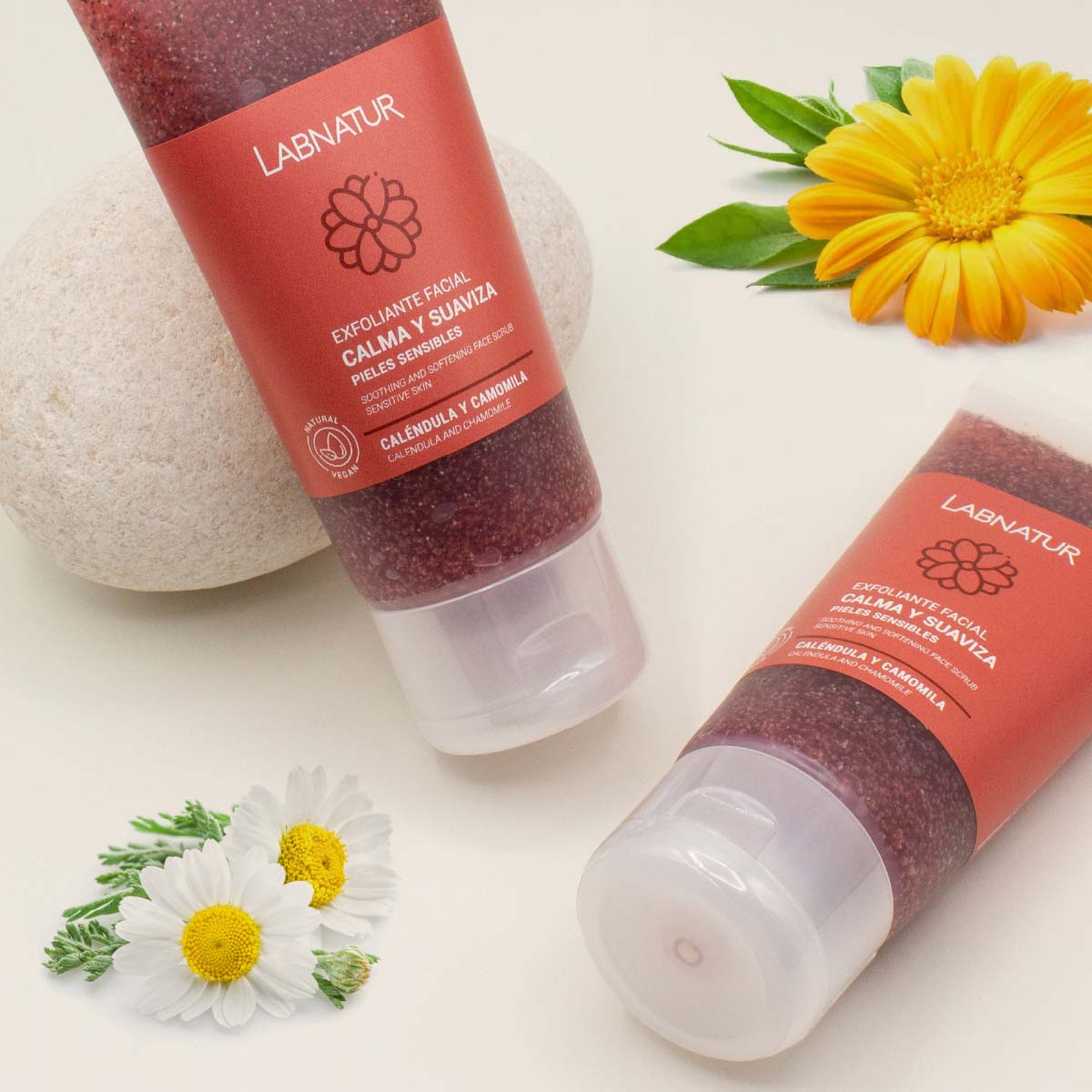O Esfoliante Facial de Calêndula e Camomila Labnatur melhora a textura e elasticidade da pele. Remove impurezas, excesso de oleosidade e células mortas da pele. Hidrata, nutre, limpa e suaviza a pele. Também facilita a absorção de cremes, soros e outras loções faciais, tornando-o perfeito para usar antes de qualquer tratamento. A esfoliação remove as células mortas da superfície da pele, fazendo uma varredura que dá luminosidade ao rosto e limpa as impurezas que se acumulam nesta parte do corpo. Graças a esta esfoliação, a pele do rosto atinge suavidade, suavidade e se prepara para a aplicação de tratamentos de beleza. O Esfoliante Facial da Labnatur funciona da seguinte forma:
