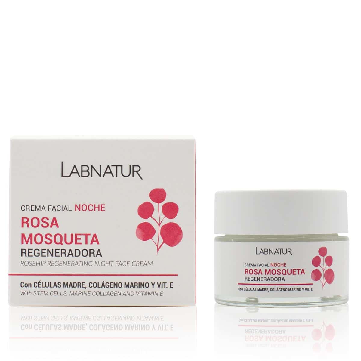 Labnatur Creme Facial Noite Rosa Mosqueta regenera e nutre a pele. Além disso, ajuda a reduzir rugas e cicatrizes. Creme de noite nutritivo que promove o processo de regeneração da pele. Fornece nutrientes e mantém a elasticidade e vitalidade. Reduz visivelmente as linhas de expressão e restaura a pele, deixando-a radiante. Creme regenerador noturno. Nosso Creme de Noite de Rosa Mosqueta ajuda a pele cansada a se regenerar durante o sono. Os óleos de Rosa Mosqueta e Avelã, com Aloe Vera, Colágeno de Plantas Marinhas, Vitamina E e Células-Tronco de Maçã Suíça, deixam a pele cheia de vitalidade, macia e aveludada. Aplicar à noite.