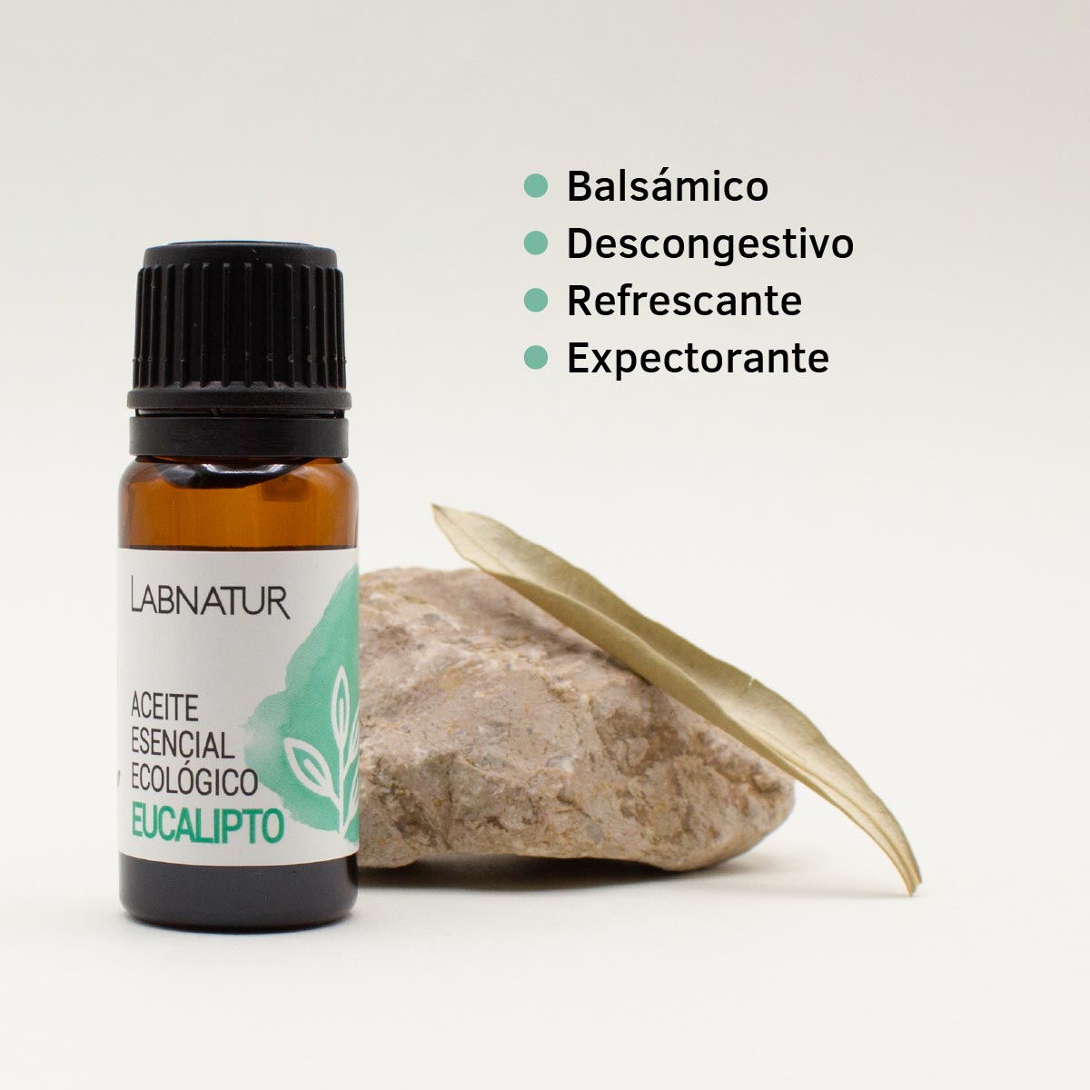 O Óleo de Eucalipto Puro da Labnatur possui propriedades bactericidas. Aplique algumas gotas de óleo essencial de eucalipto para o tratamento de dores musculares, reumatismo e herpes. Indicado para massagens balsâmicas no peito que ajudam a aliviar resfriados e gripes. O óleo vegetal de eucalipto tem propriedades purificantes, refrescantes e antibacterianas. Antibacteriano e anti-séptico, combate germes e bactérias, por isso é adequado em processos de bronquite, resfriados, sinusite, etc. Descongestionante e expectorante, Ajuda a expelir o muco e, assim, ajuda a aliviar a tosse. Muito eficaz em caso de resfriados, infecções do trato respiratório e febres. Purificante e refrescante, Purifica ambientes e pode melhorar o trato respiratório de quem sofre de sinusite ou congestão nasal. Anti-inflamatório, É uma das propriedades mais desconhecidas, mas o óleo essencial de eucalipto é usado para melhorar dores musculares, reumáticas e artríticas. É estimulante, promove atenção e concentração. É muito útil para neutralizar a preguiça. Esta propriedade torna-o ideal em ambientes de trabalho que utilizam difusores.