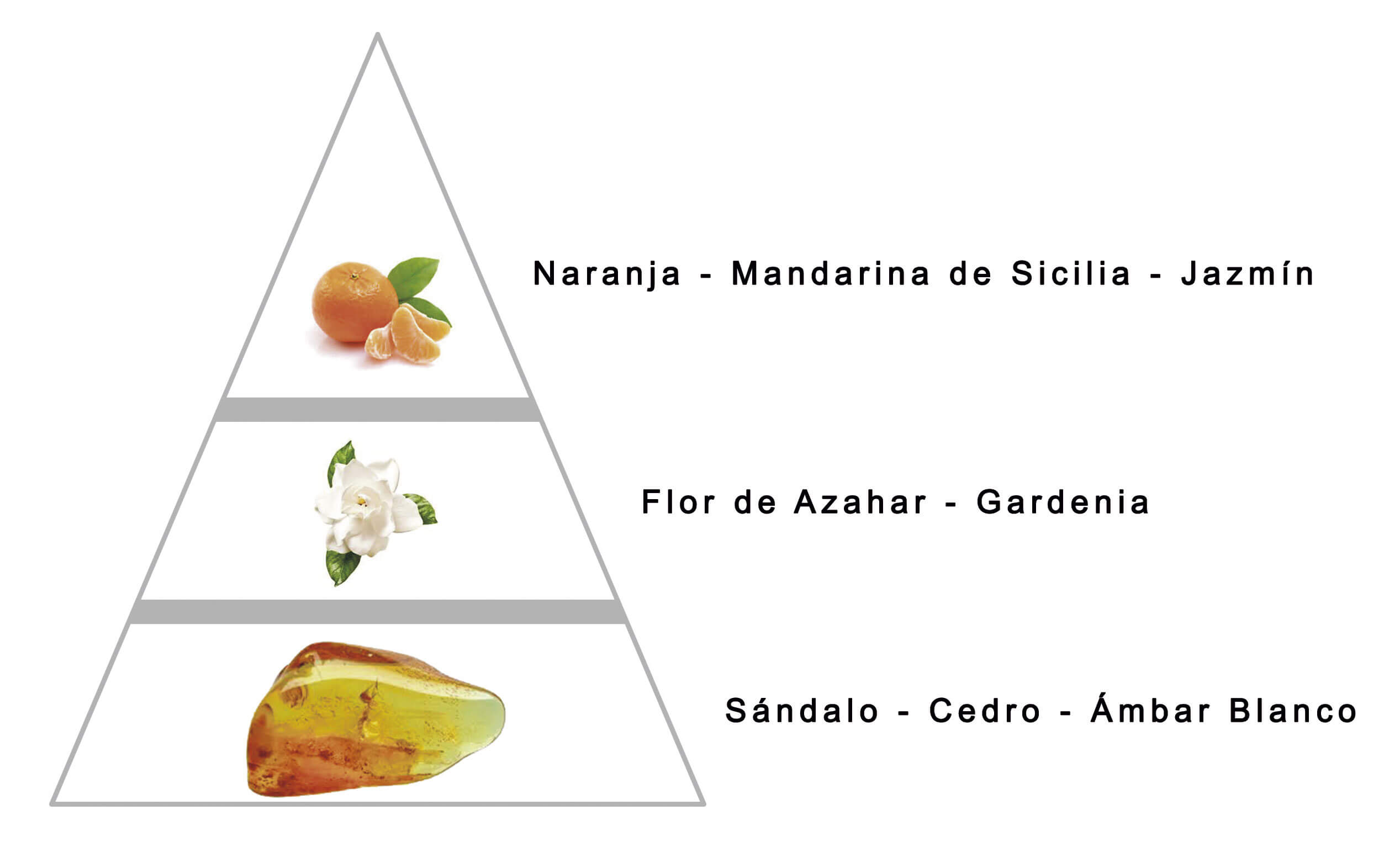 As notas de saída, com um toque de laranja amarga e tangerina, trazem um toque fresco e cítrico à fragrância. No coração da fragrância está uma mistura de jasmim, flor de laranjeira e gardênia, adicionando um toque de feminilidade e elegância à composição. O fundo se torna atalcado e âmbar em uma exibição de madeira , âmbar e absoluto de amêndoas de cacau.