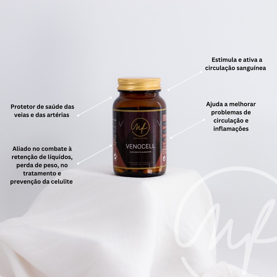O VENOCELL é um suplemento alimentar que pretende, através da combinação de diversos ativos potentes, estimular e ativar a circulação sanguínea, de modo a melhorar problemas de circulação e inflamações que daí decorrem como varizes, tromboses, varicoses, entre outros, ao funcionar como um dilatador que tem eficácia na parte venosa.